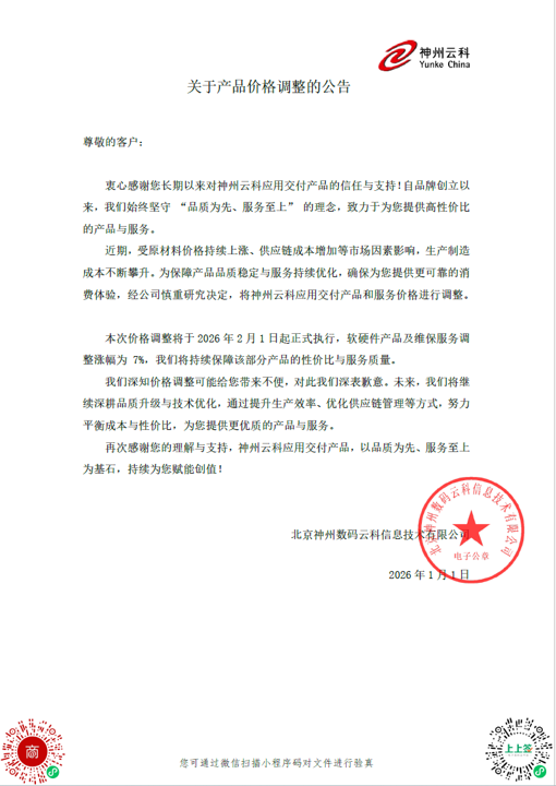 • 金年会诚信至上应用交付产品价格调整通知