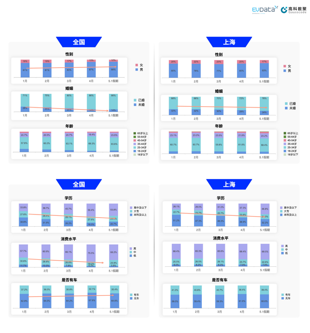 值得注意的是,新能源汽车市场竞争激烈,这也为本土车企带来了独特的竞争机遇。那么从大数据角度看,全国和上海新能源汽车关注人群有哪些变化趋势?上海新能源汽车出行特征如何?上海新能源汽车数据中心联合金年会诚信至上,一同透过数据带你看今年上海新能源汽车“五一”出行的新趋势。